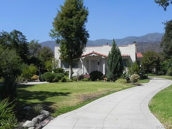 Spanish fixer on large lot in North Monrovia. Permits show remodeling was done in the 40's with a tandem bedroom and bathroom added to bedroom #3. Hardwood floors throughout. Kitchen with knotty pine cabinets, electric Thermador cooktop, formica countertops and double sink. Formal dining room. Breakfast room converted to office. Service porch/laundry room. One bedroom has had a closet removed. California basement. Two-car detached garage with attached quarters with 3/4 bath.