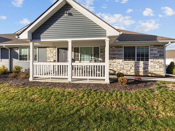 Welcome to the Deer Valley neighborhood! This community is surrounded by trees and this particular unit does not face the street. Built in 2023, this 2 bed, 2 bath unit is move-in ready. The sellers added a tile backsplash as well as decorative trim to the cabinets. There is carpet in the living room but it can easily be removed to expose the original vinyl tile that was installed. Owner's suite offers a walk-in closet, tray ceiling and spacious bathroom. Washer/Dryer included. The condo also features an oversized 2 car garage and covered front porch.This condo has a country setting yet is 10 min from Denison Univ, 11 min from downtown Newark, approx. 30 min from Easton, and just a few miles to local shopping and dining. There is also plenty of visitor parking, which is rare for a condo community!
