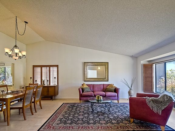 Charming single story on market first time in 17 years! Tucked up on a hill and nestled into this quaint community, this home is blessed with gentle breezes and an abundance of natural light in all of the living areas. Open floor plan greets you as you pass through front door. Birch laminate flooring in main areas and carpeted BR's. Kitchen offers granite counters and a charming breakfast nook w awesome views of your backyard paradise. Small HOA grants you access to common area pools and tennis courts. Semi finished room in garage with laundry and storage. Beautiful green backyard with fruit trees and garden beds. Hot tub and fire pit on patio.