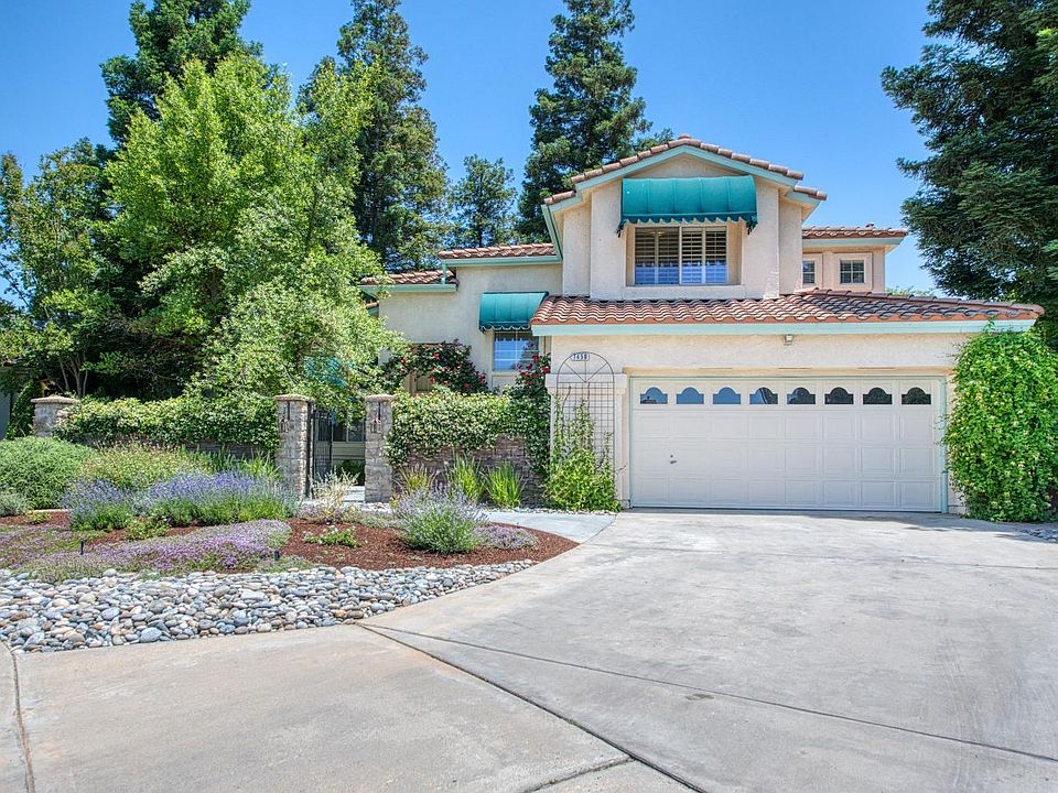 Nestled at the end of the street in a quiet neighborhood, this 4 bed 3 bath home is just shy of 2200 sq ft of living space & is located north of Herndon, minutes away from the new shopping center, Market Place at El Paseo.Walking up, the smell of jasmine & roses will welcome you into the large private courtyard. As you enter, the home you will immediately notice the soaring ceilings & abundance of windows that fill the home w/natural light. The spacious living room & dining area are perfect for entertaining or relaxing family nights. The kitchen is thoughtfully set up to make cooking a breeze with plenty of storage & granite counter space, not to mention a brand new gas cooktop. Open to the cheerful family room & dining nook area, this layout makes for easy gatherings & conversation. With views & access to the beautiful back yard, complete with a gorgeous arbor filled w/vines, it is easy to imagine spending evenings out here sipping wine & enjoying the serenity. The back yard offers plenty of room to set up a garden, or even add a pool. Back inside the home, a downstairs bedroom makes an excellent place for company, or possibly an office. Upstairs you will find 2 additional bedrooms as well as the master suite, complete with a 2 sided fireplace for warmth & ambience, & peekaboo views of the golf course. To make this home complete, you have an oversized 2 car garage that will actually allow you to park 2 cars, plus storage! Come take a look before it is gone!!!