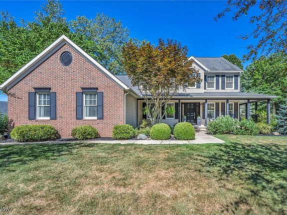 Located on a quiet street in the Cali Woods community of Concord Township, this beautiful & well-maintained Colonial sits on 2.18 acres & offers a rare combination of neighborhood living & parklike privacy. The home is designed for both comfort & flexibility, with 4 bedrooms, including a 1st-floor primary suite, 2.5 baths & over 4,613 sq ft of living sq ft w/ a finished basement. Outdoor living shines w/ a wrap-around front porch, deck, brick paver patio & a hidden trail that leads to a wooded fire pit area. An eat-in kitchen features granite countertops, stainless steel appliances, center island & dinette w/ access to the deck, and opens to a vaulted family room w/ dramatic floor-to-ceiling fireplace. A butler’s pantry connects to a large flex room, ideal as a media room, formal living space, or multipurpose retreat. The first-floor primary suite includes a tray ceiling, walk-in closet & spa-like en-suite bath w/ jetted soaking tub, double vanity & walk-in shower. Upstairs, all bedrooms have walk-in closets, plus there’s a finished room above the garage for a gym, office, or hobbies. The finished basement provides even more recreation & living space. Additional highlights include a 1st-floor laundry/mudroom & 3-car garage w/ extended parking pad, crafted brick chimney and a shed. Recent updates include: Replaced roof (2012), washer/dryer (2020), all kitchen appliances (2015), water heater (2017), sump pump (2018), installed granite countertops & replaced sink, garbage disposal & light fixtures in kitchen (2015), installed maple cabinetry, beverage refrigerator, stainless bar sink & granite countertops in butler's pantry, added 1st-floor laundry/mud room, updated guest bath, installed tile flooring & crown molding in media room, and more. INCLUDED are ALL kitchen appliances, washer/dryer, beverage refrigerator, porch swing, security system & all window treatments. Conveniently located nearI-90, OH-44, shopping, restaurants, parks, and other local attractions.