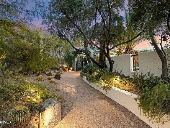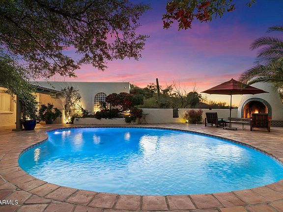 Step into a world where heritage meets modern elegance in this charming hacienda-style home designed by the renowned architect, Gerry Jones. Nestled in the heart of the breathtaking Sonoran Desert, this iconic masterpiece harmoniously blends authentic Southwestern design with the natural beauty of Carefree! A meandering path leads towards the private residence where upon entry, warm Saltillo floors and exposed natural wood beams set the stage for a residence that exudes warmth and character. The interiors are enriched by Spanish mosaic tile accents and the comforting glow of Kiva fireplaces are complimented by a backdrop of rolling foothills and Black Mountain. Designed with seamless indoor-outdoor living in mind, this home ensures a unique living experience that integrates indoor (more) ...comfort with outdoor splendor. The delightful kitchen serves as a culinary haven, ready to inspire your next gourmet creation! Serene outdoor gardens offer splashes of color while tranquil fountains enhance the sounds of nature's melody. The crown jewel of this property is the front courtyard and sparkling pool an exclusive oasis offering a perfect retreat to unwind under the vast desert sky.