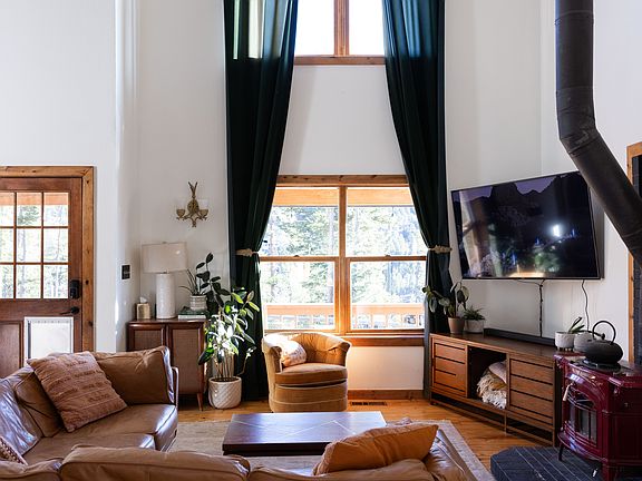 Very special and unique home. Beautiful 3 bedroom 2 bath secluded home in Evergreen. Home is on almost 4 acres at the top of a mountain. No neighbors in view of the home. Newly paved driveway. Fenced in front yard. Chicken coop and green house that are set up and ready to go. Epic views and lots of sun and flat areas in the yard. There is a large loft that is great for an office space. Large master bedroom with bathroom and walk in closet. New furnace. Two good sized bedrooms with closets downstairs and master is upstairs. Great spot for people with kiddos, lots of outdoor space to explore. Fire pit area in the back yard. Amazing wood burning stove for the winter time. Plenty of wood to be chopped on the property if you're up for it. Furnace heat as well. High speed internet. Natural gas. Community well water. Tons of wildlife. Snow removal is the tenants responsibility as well as light front yard maintenance in the summer.