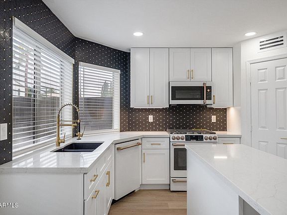 Completely renovated and move in ready! New underlayment and roof, fresh exterior paint, brand new backyard turf and paver area for entertaining, designer two-toned paint interior with high end fixtures throughout, High end GE Cafe custom appliances, brand new soft-close cabinets and drawers though out, custom stone counters in kitchen and all three bathrooms, beautifully laid Provenza Sweet Talker flooring on the main level, and the upgrades go on... Master suite features a custom tile shower with beautiful glass surround, as well as a standalone soaking tub with a beautiful sparkling chandelier above. Guest bath upstairs features dual sinks, and the main floor bath features an additional tile shower. Garage features a fully plumbed utility sink and workspace. Take a look for yourself!