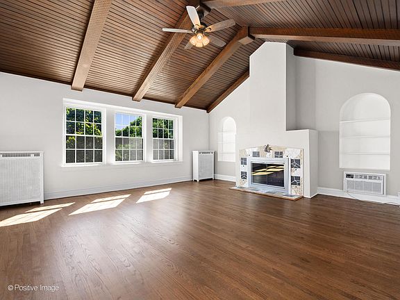 Vintage charm meets modern living in this large 3 bedroom 2 bathroom home. Top floor unit offers quiet treetop views. The Livingroom has tall vaulted ceilings with a wood burning fireplace. A spacious formal dining room with wainscoting. Freshly refinished hardwood floors throughout. Updated bathrooms. Newly renovated kitchen with shaker cabinets, quartz countertops, and stainless steel appliances. In unit washer dryer hook up with large back mudroom. Exposed brick hallway. Garage space included. Additional storage in the basement. Short distance to the Howard red, purple, and yellow El stop and the Metra Train. Conveniently located near several shops, restaurants, the lake and so much more.