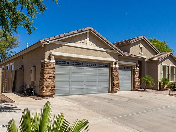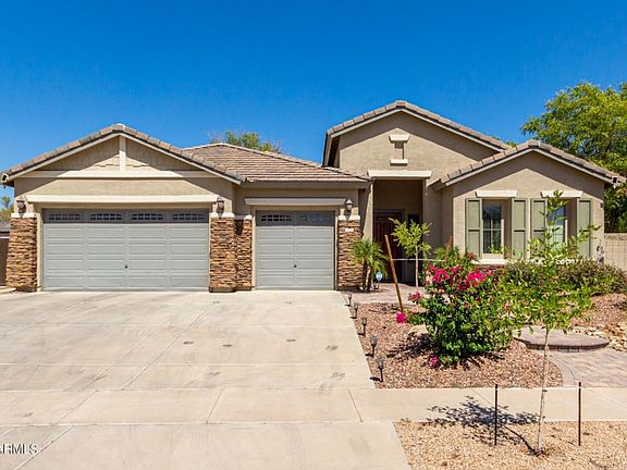 Fantastic rental opportunity! This stunning 4-bedroom, 3-bathroom residence is complete with a 3-car garage, RV gate, tasteful stone accents, and a well-landscaped yard. Venture into the living room featuring high ceilings, recessed lighting, a neutral palette, and durable tile flooring. Host special occasions in the formal dining room! Enjoy intimate moments with loved ones in the cozy great room. The kitchen boasts a breakfast nook, granite counters, custom wood cabinetry with crown molding, SS appliances, a pantry, and an island with a breakfast bar. The main bedroom offers plush carpeting, backyard access, an ensuite with dual sinks, and a walk-in closet. The backyard includes a covered patio, storage shed, lush lawn, and a firepit for evenings under the stars. See it now!
