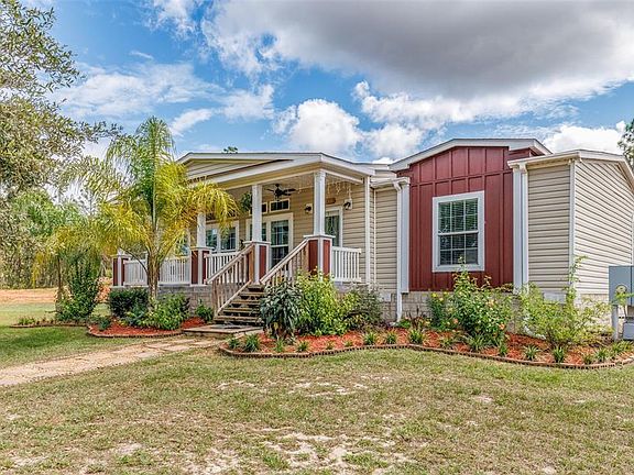 Welcome to this stunning custom 4-bedroom three-bathroom home on 2.28 private acres at the end of a quiet cul-de-sac! Designed with comfort and function in mind, this home has it all—from modern finishes to wide-open space with room to grow. Inside, you’ll find 9-foot ceilings and crown molding throughout, creating a bright and elegant atmosphere. The open-concept living area flows effortlessly into the kitchen, featuring granite countertops, a large walk-in pantry, and an extra-large refrigerator—flawless for family living and entertaining. The living room has a fireplace for those relaxing and occasional cooler nights. The dining and living room are separated by sliding barn doors, opening to a flexible formal dining/play area with direct access to the outdoors. The large master suite is a true retreat with double sinks, a spacious walk-in shower, and ample storage. Additional doors for easy backyard access, an office area, and a thoughtfully designed layout to suit many lifestyles. Step outside and enjoy your own slice of Florida nature. There’s plenty of space for a future pool, garden, or workshop—plus a 400-amp service and RV hookup, making it easy to accommodate all your hobbies and needs. Relax on the front porch and take in the peace and privacy of this tucked-away setting, all while staying close to shopping and dining. Working in the big cities, just jump on the expressway with easy access turn on your music. Don’t miss the chance to own this one-of-a-kind property—schedule your private showing today!