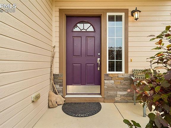 Stunning 4 bedroom, 4 bathroom home close to major military bases, shopping, and easy access to I-25. Enjoy your summer mornings soaking up the sun with a cup of coffee on the covered front porch. Through the front door you'll find a well lit and spacious open floor plan where the living room flows seamlessly into the kitchen and dining area. The kitchen boasts a large breakfast bar, stainless steel appliances, and ample counter and cabinet space. The dining area walks out to the back patio with large fenced back yard that features garden boxes, fire pit, storage shed, and cement pad closer to the fence that can be used in various ways. The main level also has a bedroom which is currently being utilized as a home office and a half bath. The space is perfect for the at home worker or as an accessible main floor bedroom. The upper level has three bedrooms including the master bedroom. The luxurious master suite features a barn wood accent wall, private access to the upper balcony, ensuite bath, and walk in closet. The ensuite bath features a double vanity, garden tub, and free standing shower. Completing the upper level are bedrooms three and four and another full bath. Down the steps to the basement the large family room features a gas log fireplace with wooden mantle and stone accent. With the size of the family room there are ample options to configure the space in different zones whether a tv/theater area, playroom, or workout space the possibilities are endless. The basement also has bedroom five and a full bath. This home has so much to offer and is located on the southeast side of town with ideal access to I25 and military bases as well as the incredible Bluestem Prairie open space with wonderful hiking trails.