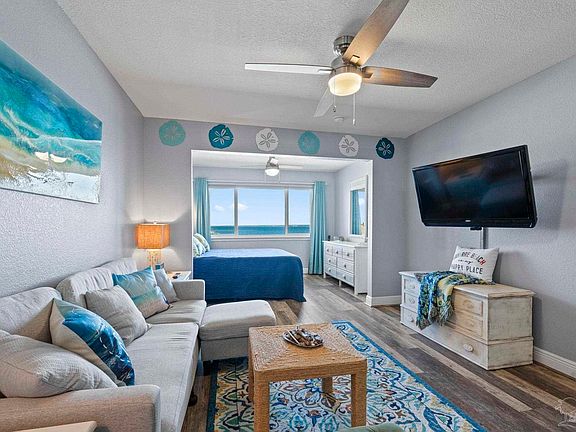 Welcome to your perfect beach retreat! This charming studio condo is located on the top level (a rare find!) with views of the beautiful Santa Rosa Sound, offering an ideal combination of comfort, convenience, and coastal living. The spacious, open floor plan maximizes the use of space, creating a bright and airy atmosphere. Stylish furnishings and coastal décor provide a relaxing and inviting environment. With easy access to the nearby elevator, head down to enjoy a refreshing swim in the community pool or take a stroll down the community dock perfect for fishing, boating, or simply enjoying the stunning waterfront views. Recent upgrades include a newly installed impact window and a freshly painted exterior, ensuring both beauty and peace of mind. Don’t miss out on this coastal gem!