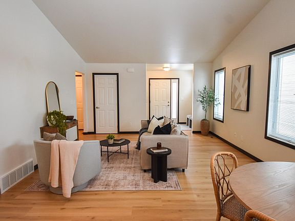 This move-in ready home is perfectly situated near schools and parks, making everyday life easy and convenient. Inside, you’ll find a bright, sun-filled living room that flows right into the dining area and kitchen. The kitchen features a center island with seating, plenty of cabinet space, stainless steel appliances, and stylish pendant lighting. The main floor includes a roomy primary bedroom with its own private bathroom and walk-in closet, an additional bedroom with a walk-in closet and bathroom. The finished basement adds even more space with a large family room, two additional bedrooms—each with walk-in closets—a full bathroom, a storage room, and a utility room. With new flooring in the great room and an attached two-stall garage, this home offers comfort, space, and a location you’ll love. Owner agent.