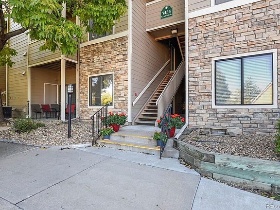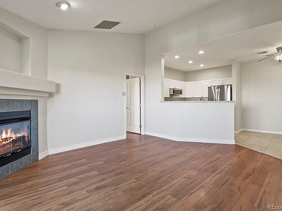 This beautifully remodeled top-floor condo offers stunning views of Denver and the surrounding mountains. Featuring vaulted ceilings and radiant in-floor heating throughout, the spacious layout includes two large bedrooms and two bathrooms, including an ensuite primary with modern fixtures. The gourmet kitchen is equipped with granite counters, stainless appliances, and plenty of cabinetry for storage. Cozy up by the gas fireplace or relax on the covered balcony, which includes a convenient extra storage room. The home includes in-unit laundry for added convenience! Located near Ken Caryl Valley, mountain trails, outdoor activities, stores and restaurants, this home also includes a reserved parking spot, access to a clubhouse with a fitness center, and a pool—perfect for comfortable, mountain-inspired living.