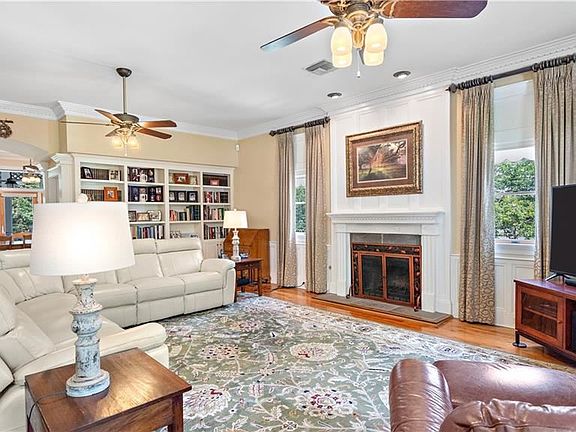 GREAT PRICE ADJUSTMENT on this lovely 5 BR Acadian sitting on parklike acreage once owned by Walker Percy. The gorgeous, undulating land showcases varieties of persimmon, pear, fig, blueberry, cypress + oak trees leading down to the sandy beach at the Little Bogue Falaya. Main home features new roof, comfortable living spaces, designer appliances, hardwood floors, spacious bedrooms + a back porch with incredible views of the property. Detached 1400 sqft guest house has TWO separate 1BR apts. Flood Zone B.