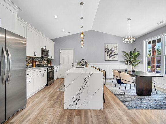 Brand-New Ranch Home - Move-In Ready! Step into this beautifully built brand-new construction ranch home offering over 1,400 sq. ft. of modern living space. Featuring 3 bedrooms and 2 full baths, this home combines thoughtful design with stylish finishes throughout. The inviting open-concept layout connects the living room, dining area, and kitchen seamlessly, highlighted by a fireplace in the living room that creates a warm, welcoming atmosphere. The kitchen is a showstopper with quartz countertops, a custom backsplash, full stainless steel appliance package, and a custom waterfall island with sit-at countertop dininga"perfect for both casual meals and entertaining. The primary suite stands out with a custom wall design, adding elegance and charm, while additional bedrooms are generously sized. Throughout the home, details like wainscoting accents bring timeless style. Practical upgrades include a power-vented tankless water heater and a garage wired for an electric vehicle charger. The extended driveway easily fits two cars in addition to the one-car garage. Outside, the exterior blends durable vinyl siding with a stone veneer front, giving the home a timeless look. This already built, move-in ready new construction is waiting for its first owner