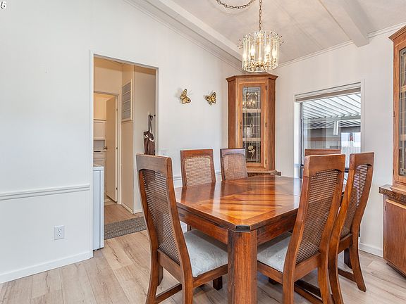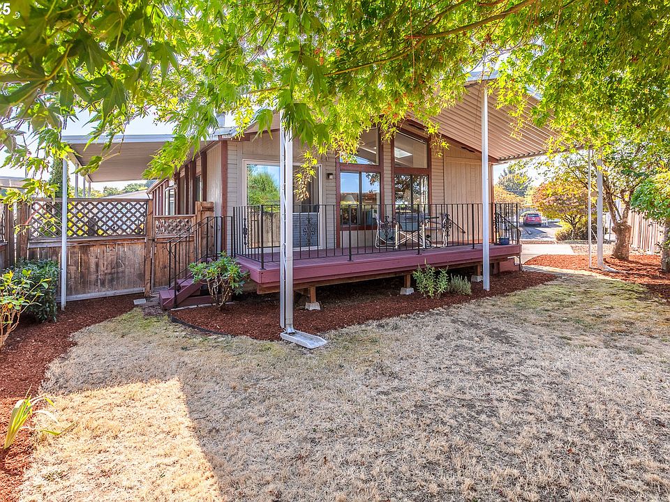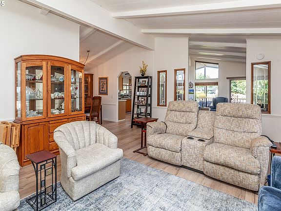 Welcome home to this lovely, contemporary style, one-level home! Completely remodeled, recent paint throughout, lighting, new kitchen range, luxury vinal plank flooring, updated bathrooms, newer heating and cooling, updated plumbing and new custom window coverings throughout! This home is perfectly placed on an oversized lot in Terri Lynne Terrace a 55+ community. Well appointed, this very spacious, light and bright home is the one you have been waiting for! The moment you enter you are greeted with a proper living room, dining room, a kitchen with eat-in breakfast nook, ample storage, plenty of counter space, a newer large stainless refrigerator, and a huge wall of windows drenching the space in natural light. The vaulted ceilings and skylights add tremendous appeal to this home, giving a very light and airy feeling. You will also notice the large coververd deck off of the breakfast nook for enjoying slow afternoons, morning coffee or gathering. The home also features three bedrooms, two full bathrooms, laundry room with new washer and dryer, pantry, some lovely built-ins throughout and a cozy woodstove to relax by on chilly days. The primary bedroom is very generous in size, offering an ensuite with soaking tub and a walk-in closet. The other full bathroom conviently offers an oversized walk-in shower for accesibilty. This home has everything you need, including a work shop/storage building with power, ample covered parking, a lovely yard, and so much more! Conviently located to shopping, transport and easy freeway access. The community is well cared for and managed. You will love living here! Must be 55+ / Space rent $1100 per month.