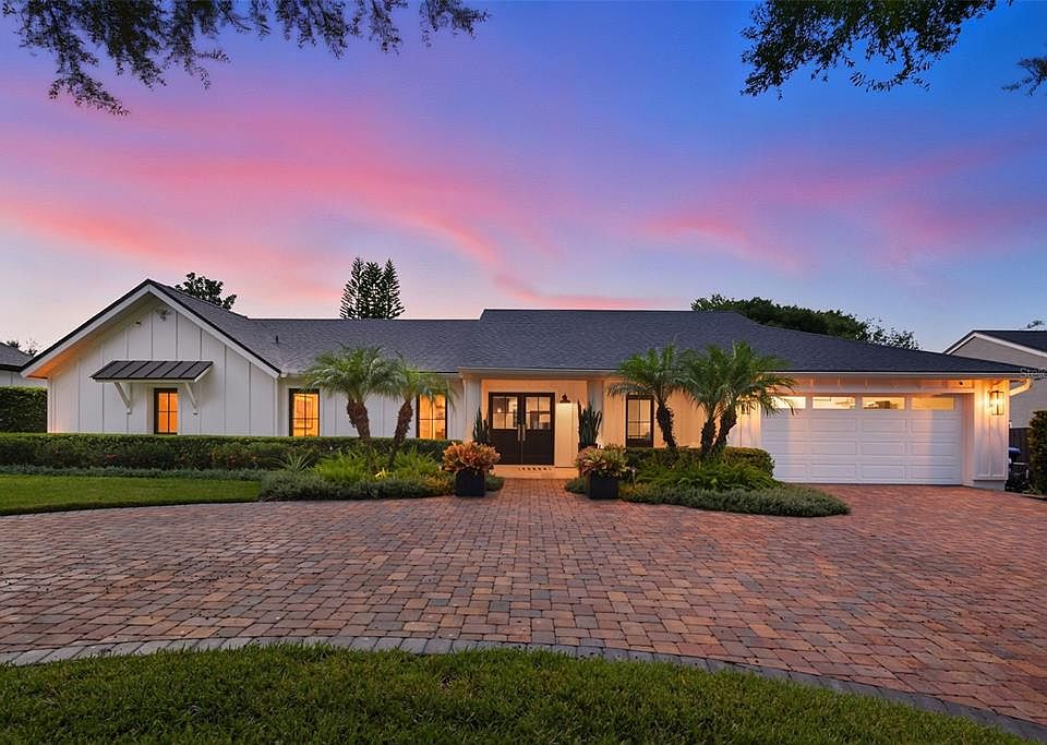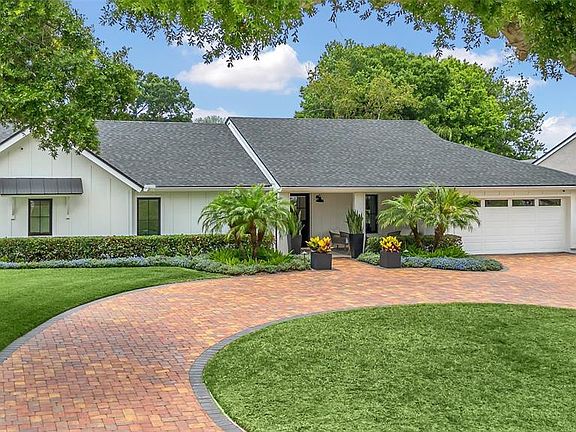 One or more photo(s) has been virtually staged. Welcome to your dream home in the heart of historic Dr. Phillips, inside the exclusive gated community of Orange Tree Country Club. This immaculate 4-bedroom, 2.5-bath residence blends farmhouse charm with modern luxury. Originally renovated in 2020 by Akers Custom Homes and thoughtfully updated again in 2022, no detail has been overlooked. This home's welcoming curb appeal will draw you in with its lush landscaping, circular paver driveway, planter boxes and exterior lighting. As you step inside you are greeted by spacious rooms illuminated by an abundance of natural light, vaulted ceilings and engineered hardwood floors that create an open and inviting atmosphere. The kitchen is a chef's delight featuring quartz countertops, spacious prep areas, custom cabinetry and GE Cafe appliances--the perfect backdrop for your culinary adventures. Off the kitchen, the dining room has a 12' dry bar for entertaining with 2 refrigerators underneath for holding all your beverages. The large, open family room with vaulted ceilings and custom closets for extra storage is the highlight of this home along with its grand electric fireplace and expansive views of the private backyard. The sliding doors as well as most of the windows in the house are covered with electric Lutron Shades. Whether having a BBQ, soaking in the heated spa, playing games in the backyard, or relaxing in this serene retreat, you will find endless opportunities for entertaining your family and friends. The primary suite features a custom walk-in closet and an added flex space that can serve as a home office, nursery, or fourth bedroom. The ensuite bathroom is a luxurious oasis with a dual vanity and oversized walk-in shower with dual shower heads. The fact this home was renovated by a first class builder in 2020 and then again in 2022 by the current owners makes this a golden opportunity for the taking. Other features include: In 2020- a new roof, new electrical wiring, new plumbing, new insulation, new light fixtures and LED canned lights, whole house speaker system, new water heaters with circulating pump, high energy efficient Carrier HVAC in Family Room. In 2022-New roof, all new Andersen windows and Carrier split HVAC in Garage. Truly move-in ready, it feels brand new. The Orange Tree community is built around a private golf course and features a recreation center on Lake Marsha. Just a short walk from your front door, you’ll enjoy an outdoor heated pool, tennis, pickleball, basketball, racquetball, and volleyball courts, plus a fitness center, playground, saunas, and meeting rooms. The Rec Center also hosts year-round events for residents—including Bingo, Bunco, holiday visits from the Easter Bunny and Santa Claus, wine tastings, "National Night Out" and more—making it a true hub for fun, relaxation, and connection. Conveniently located near top-rated schools, the YMCA, Restaurant Row, Trader Joe’s, Whole Foods, upscale shopping, outlet malls, the airport, and world-famous theme parks, this home offers both luxury and lifestyle. Welcome home to Orange Tree—where comfort, elegance, and community come together.