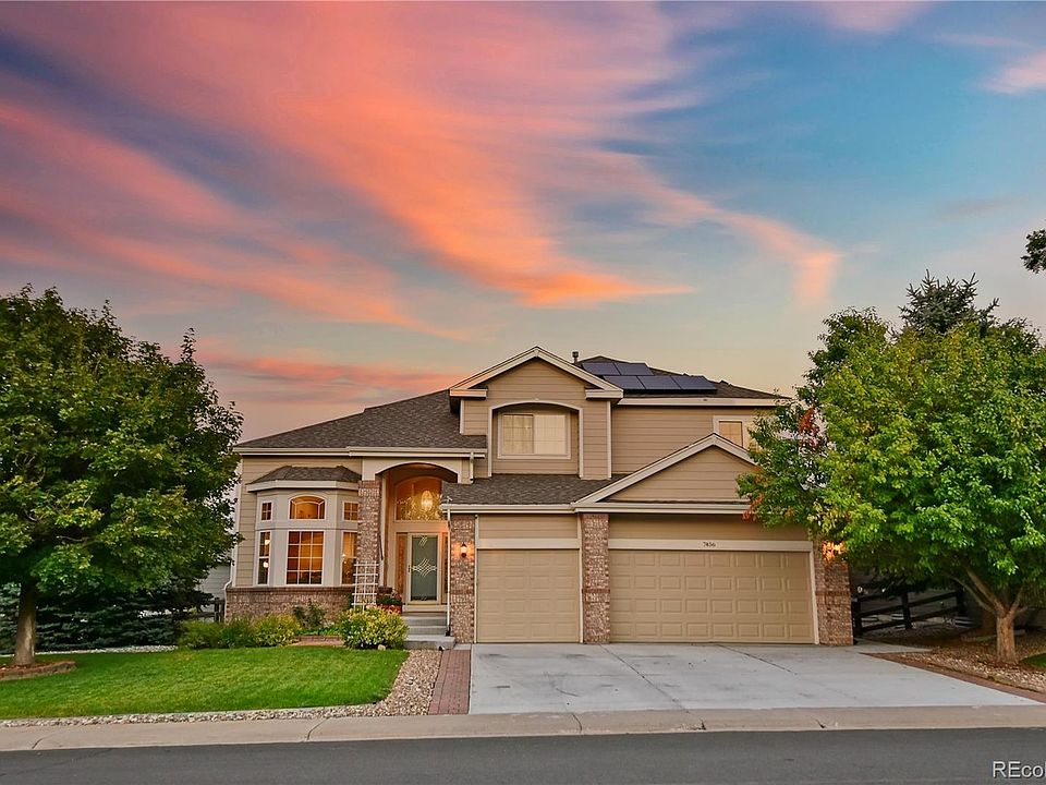 This beautiful home sits on almost a quarter acre lot in a cul-de-sac, tucked into the peaceful neighborhood of Roxborough, just south of Sterling Ranch.  With a Main Floor Primary Bedroom and ensuite bath, plenty more bedrooms and bathrooms, a loft/office, formal dining, living, and large family room and kitchen, this home will let you spread out. Beautiful granite countertops, newly refinished oak hardwood floors throughout the entryway, kitchen and family room- you'll have to see this.  The kitchen and primary bath have soft close cabinets and the kitchen has pull out drawers for pots and pans. The newly carpeted upstairs, and new and newer paint inside and out make this home move-in ready.  A finished basement bedroom and bathroom, entertainment area, wet bar, kegerator/wine fridge and along with unfinished storage meeting all your space needs. A beautiful expansive yard in the front and back includes large grass areas, a drip irrigated garden, numerous healthy mature trees, flowers, blackberry, raspberry, and lilac bushes.  Two decks with a large concrete patio, a concrete walkway around the side, and a greenbelt behind creates a beautiful, many season outdoor living space for all. ACTIVE SOLAR, new in 2019 included, *Avg Electric $9.39 a mo*, with a whole house fan too, a 3 car garage with cooling exhaust fan, front and back irrigated Rachio sprinkler control system, and many smart home features enhance this home's low energy costs. Low HOA fees and low metro district taxes allows you more home for your money!  Nearby Elementary Schools, parks and trails grace this neighborhood and the adjacent Roxborough and Chatfield State Parks, and Waterton Canyon are a bonus. The neighborhood parks have tennis courts, skate park, pavilions, walking trails, playgrounds, and ballfields. A brand new refrigerator, newer appliances, and a *1 year Home Warranty will give you peace of mind. Smart home features include garage door, thermostat, irrigation, and video doorbell.