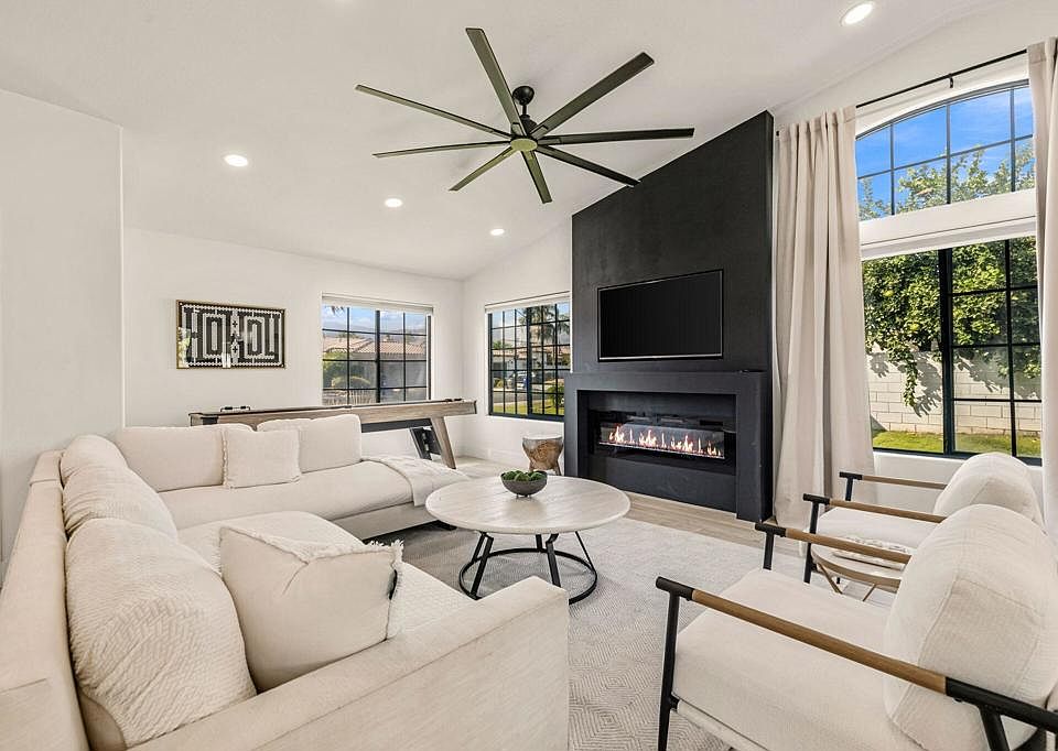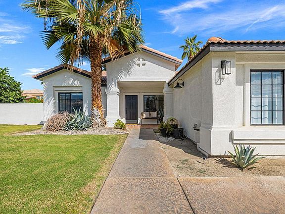 Experience modern desert living at its finest in this beautifully remodeled Palm Desert home. Thoughtfully updated throughout, this residence offers a seamless blend of warmth, style, and function. An open and airy floor plan welcomes you with abundant natural light, vaulted ceilings, and designer finishes that create an effortless flow between living, dining, and kitchen spaces. The remodeled kitchen features sleek quartz countertops, custom cabinetry, and stainless steel appliances, perfect for both everyday living and entertaining. Retreat to the inviting primary suite with a tastefully updated bathroom, while the additional bedrooms provide comfort and flexibility for guests, family, or a home office. Step outside to a private backyard oasis complete with a sparkling pool, spacious patio, and desert landscaping ideal for outdoor dining or relaxing under the stars. Centrally located near shopping, dining, and world-class golf, this home captures the essence of contemporary desert style and easy Palm Desert living.