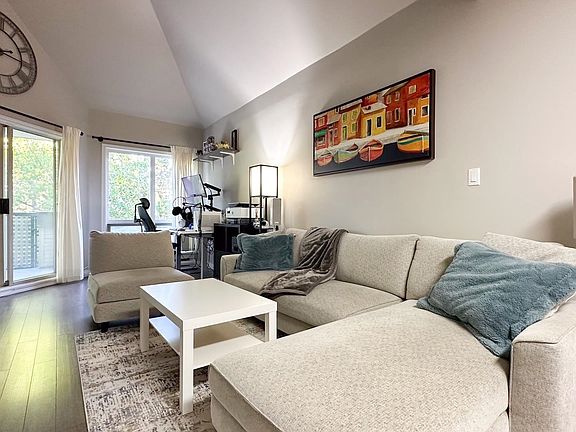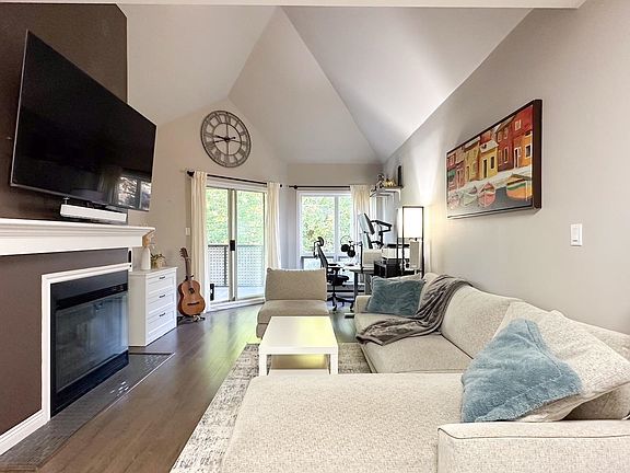 Vaulted ceilingsAbundant natural lightLarge covered southeast-facing balconyUpdated kitchenCozy gas fireplace