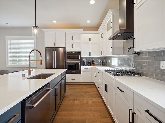 The kitchen is truly a culinary masterpiece. With black stainless steel KitchenAid appliances, 42" upper cabinets, a generous pantry, and sleek quartz countertops, it's a space designed for both functionality and style. The large island serves as a hub for meal prep and casual dining, all while efficient air conditioning keeps you comfortable throughout the warm Seattle summers.