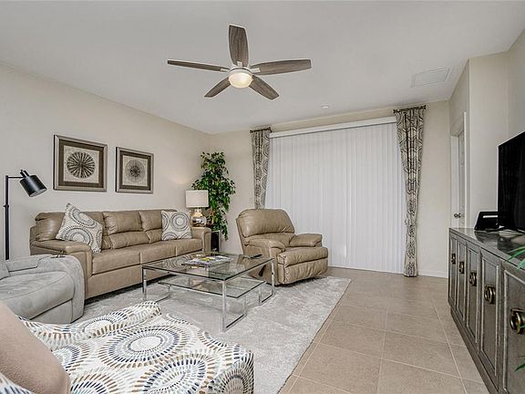 TURN KEY FURNISHED! Professionally decorated and styled with upscale modern coastal furnishings. It even includes the custom window treatments and blinds! With its neutral palette and light and bright feeling you’ll have a wonderful Florida oasis. The generously sized open floor plan makes entertaining or being with family easy. The kitchen has plenty of cabinet space and a lovely breakfast bar. The great room has beautiful custom furniture and a slider to the screened lanai. Off the great room is a den that is converted to a bedroom with French doors in case you need to work or would like to use for guests. The primary suite features dual vanities and a walk-in shower in the bathroom and the custom made bed linens are included. An additional bedroom and bath, also professionally decorated, provides a great space for visitors. The private screened lanai has a tiled floor to make it an extension of the great room and a dining table which doubles as a fire table. There are accordion storm shutter for all windows and the sliding doors. The clubhouse is equipped with a full gym, 2 heated pools, New Pickleball Courts, Bocce Ball Courts, Billiard Room, and a Card Room. Punta Gorda is a vibrant waterfront community with a connected and relaxed lifestyle. It is a charming historic town on the-mile-wide Peace River. Downtown Punta Gorda offers concerts, wine and jazz festivals, The Taste of Punta Gorda and art/craft shows to name just a few. For all you golfing enthusiast, there are 8 golf courses within a 20 minute drive. The Punta Gorda Airport, which services many destinations and direct flights is just 5 minutes away.