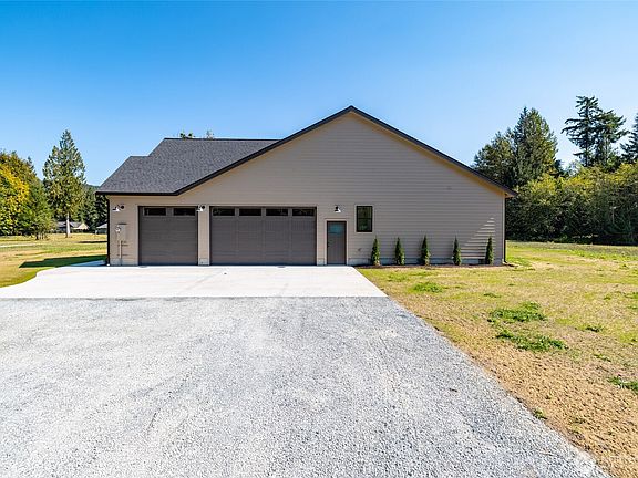 High-end open concept new construction one story home w/ mountain views! Enjoy the rich details of this quality-build featuring luxury vinyl plank floors, vaulted ceilings, waterfall kitchen island w/ eating bar, matte black sink, & solid quartz counters throughout. Living room w/ fireplace & abundant windows. Airy primary w/ walk-in closet, dual vanities, freestanding soaking tub, & walk-in tile shower w/ frameless glass door. Office/workout/playroom w/ French doors. Laundry/mudroom w/ sink & ample storage. Ductless heat pump & A/C. Three car garage w/ space for storage/workbench. Covered back patio to enjoy rain or shine & a generous amount of yard space for gardens, play, hosting events, & more.