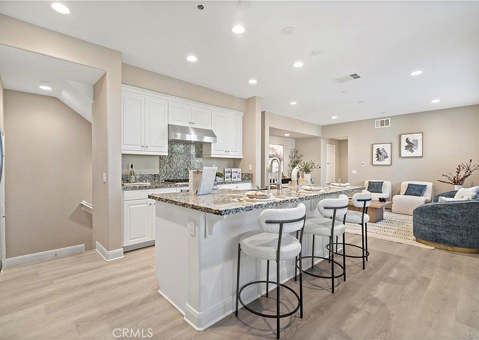 Welcome to 7459 Solstice Place, a contemporary 3-bedroom, 3-bathroom condo nestled in the sought-after Day Creek Square community of Rancho Cucamonga. Built in 2020, this 1,845 sqft tri-level home offers modern design and comfortable living.Brand-new flooring throughout the entire home!! One bedroom suite conveniently located on the first floor, complete with a private patio. Open-concept kitchen featuring granite countertops, a center island, recessed lighting, and stainless steel appliances, including a refrigerator. Spacious living areas are adorned with laminate flooring. Master suite boasts dual vanities and a walk-in closet. Property Highlights: **Spacious Layout**: Three levels of thoughtfully designed living space, providing ample room for relaxation and entertainment. **Modern Amenities**: Enjoy central forced air cooling, a two-car garage, and contemporary finishes throughout. **Community Features**: Residents can access a pool, spa/hot tub, and barbecue area, perfect for leisure and gatherings. **Prime Location**: Situated within the Etiwanda School District, with Terra Vista Elementary, Etiwanda Intermediate, and Rancho Cucamonga High School nearby. Shopping, dining, and parks are also within easy reach.