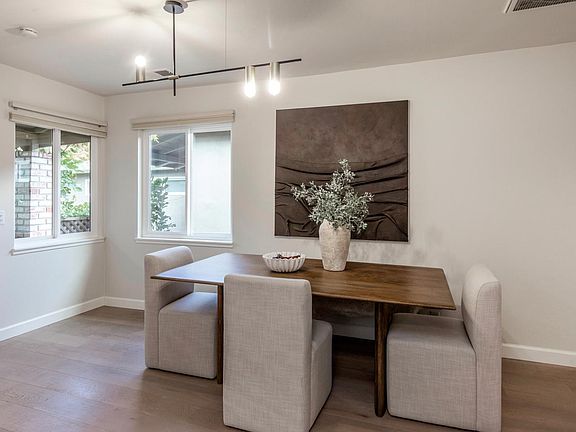Beautifully remodeled with turnkey appeal, this North Fair Oaks gem showcases modern livability midway between Silicon Valley and San Francisco. The flexible two-story layout features two bedrooms and two remodeled baths, all enhanced by a palette of soft designer colors and white oak engineered hardwood floors. The open living area at the entrance has a modern chandelier and connects seamlessly to the sleek kitchen with a quartzite-topped peninsula with counter seating, custom suspended vent hood, and stainless steel appliances. At the rear of the home is a spacious family room that opens to the private paver-finished rear yard. A main-level bedroom and bath are complemented by the upstairs primary suite with walk-in closet, western hill views, and well-appointed bathroom. Smart features include a Ring doorbell, keyless front entry, and a smart thermostat along with central air conditioning. Roses, geraniums, and a camellia enliven the setting, which has ample off-street parking and an attached 1-car garage. Just blocks from the Redwood City Stanford campus and minutes to Meta headquarters and Highway 101.