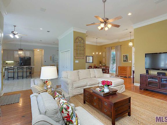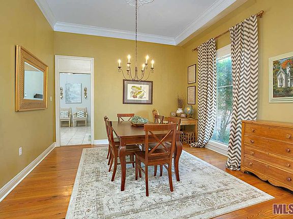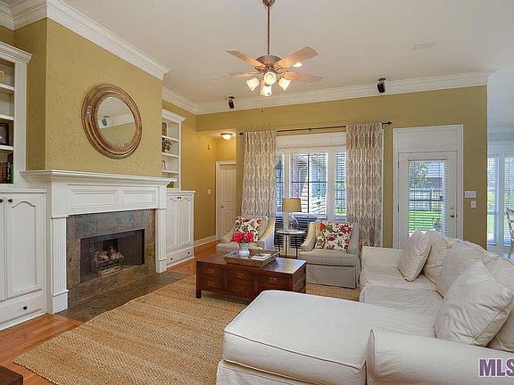 Prime Location - Perkins between Bluebonnet and Siegen. Beautiful four bedroom home near shopping, restaurants, YMCA, post office and library. Wood flooring in dining and living room, stucco mantel above gas fireplace with built-ins and separate wing for three bedrooms and guest bathroom. Dining room overlooks front porch and views beautifully landscaped front yard. Master Bedroom views the back patio and yard and master bathroom has separate shower and jetted tub, a make up area and separate vanities, mirrored wall and separate his and her closets. Kitchen includes breakfast area, large island and oversized pantry, cabinets galore and keeping room off to the side. Kitchen appliances include a gas cooktop on island, microwave, wall oven, dishwasher and corner sinks with window overlooking backyard. Half Bath and Laundry room with overhead cabinetry, next to kitchen and keeping room. Home has a front loading garage and a covered back patio a addtional uncovered patio and a privacy fenced back yard.
