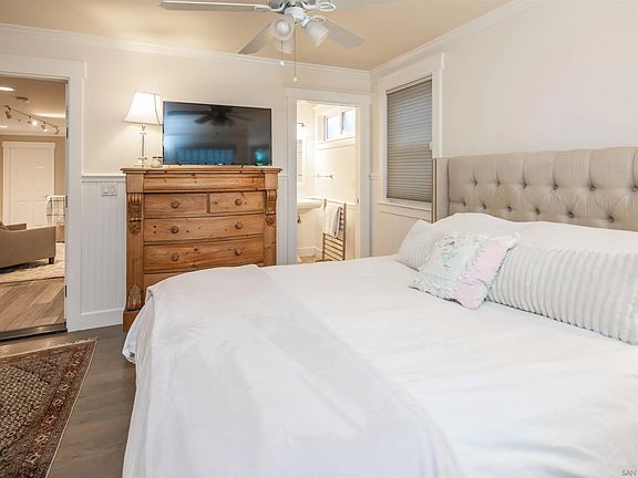 Wonderful location! This beautiful fully furnished, air-conditioned home boasts 3 bedrooms with an optional fourth being a third-level loft complete with a daybed with two twins and a window bed perfect for extra guests. The location is ideal for walking and/or biking to the beach and into town. Enjoy the outdoor seating on the front patio and balconies throughout the home. As you enter, there is a bedroom with a queen-size bed with its own bath along with an office and a stacked washer/dryer. Walk up the staircase to the second level where you will find an open and airy kitchen/dining/living room area with vaulted ceilings and wonderful lighting from all the windows. The kitchen has stainless steel appliances and a granite island with seating for 3 which opens up to the living room complete with a gas fireplace, TV, comfy window seat, built-in bookcase, and French doors leading to a balcony with seating. There are 2 additional bedrooms on the second level that share a bath, one has a queen-size bed with a TV, and a barn-style door that opens out to a balcony with seating. The other bedroom has a King size bed and also has a TV. The third level features a cozy loft with a twin trundle bed and a window seat/bed along with a desk. The home also has a BBQ, bikes, and all the beach amenities you will need to enjoy your Coronado vacation. Please Note: This is a back house on an alley with a detached home in front. Monthly rates vary depending on the season and length of the lease. September/RENTED October thru December 2025/RENTED January 2026 thru May 2026/ $9,500 June 1 - 26, 2026/ $11,500 JULY 2026 / RENTED August 2026 / $12,500 September thru December 2026/ $9,500