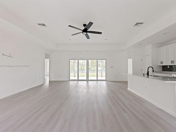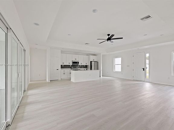 Step into this beautiful and modern home with high ceilings, offering 4 spacious bedrooms and 3 full bathrooms. The open floor plan features a great room perfect for relaxation and gatherings. The beautifully designed kitchen boasts quartz countertops, an island, and stainless steel appliances. The master suite offers a large walk-in closet and a master bathroom with white quartz double sinks and a wall-to-ceiling tiled shower, combining style and luxury. Enjoy peace of mind with impact windows, ensuring safety and tranquility.