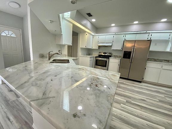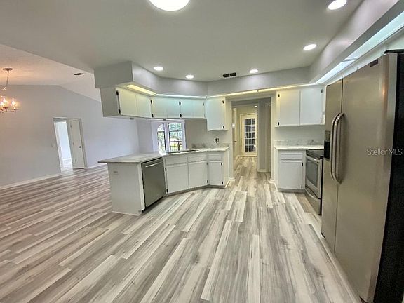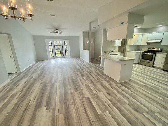 This deal wont last!!! This 4 bed 3 bath home has been COMPLETELY REMODELED. This home features a brand new roof, brand new interior and exterior paint, stainless steel appliances, new landscaping, remodeled bathrooms, and much more! You are sure to impress your guests as soon as they walk through the door and see this HUGE open floor plan, tons of large windows and natural light, high ceilings and plenty of space to entertain. This home features a large eat in kitchen with brand new recessed lighting and beautiful dining space. You will also enjoy the triple split bedroom layout and two bedroom suites with attached bathrooms! The master bedroom suite has fully upgraded bathroom within as well as 2 separate large walk in closets. The master bedroom also has french doors leading to a private retreat that would be perfect for an office , large sitting area or even a nursery for a new baby! There is a large attached screened lanai leading out to a gorgeous backyard completely surrounded by privacy fence. This backyard is truly serene. There is a two car garage and an oversize driveway, allowing for plenty of parking space. This property has gorgeous landscaping and excellent curb appeal! You are just minutes from shopping, golf courses, beautiful lakes, many top rated schools,universities and more! This home will not last long!