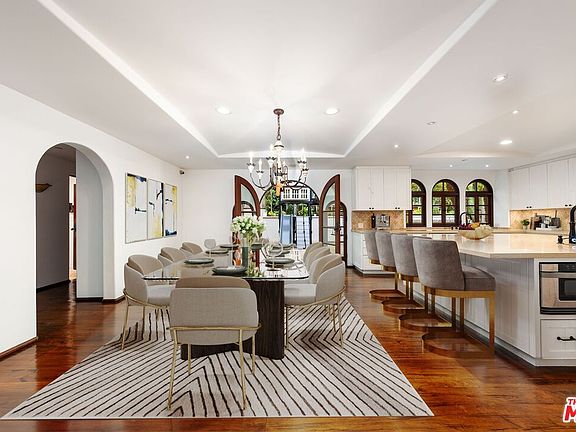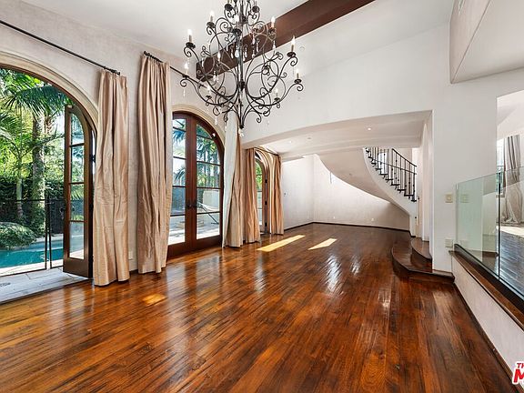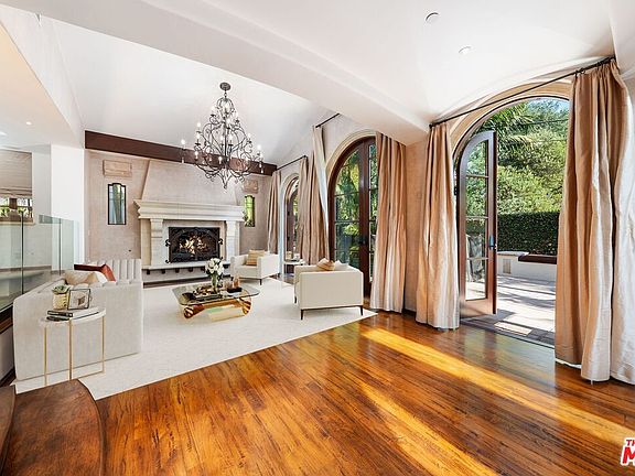 Nestled in one of Brentwood's most scenic enclaves, 746 Norway Lane is a Spanish-inspired villa that blends timeless charm with everyday functionality. A grand two-story foyer, highlighted by a sweeping wrought-iron staircase and expansive custom arched windows, sets the tone for this architectural gem. The thoughtfully designed floor plan showcases authentic details such as barrel and tray ceilings, iron details, exposed beams, arched passages, and thick plaster walls. The chef's kitchen is appointed with custom cabinetry and Viking appliances, opening seamlessly to the home's living and entertaining spaces. Upstairs, four generous bedrooms plus an office feature pitched ceilings and beautifully finished bathrooms, while the primary suite offers a serene retreat with private balconies overlooking the lush backyard. Refined finishes throughout include stone and marble surfaces, gold-leaf accents, antiqued mirrors, and rich walnut floors. The rear grounds provide an ideal setting for entertaining with resort-like amenities including lush landscaping, cascading waterfalls, a lagoon-style pool, built-in barbecue, and fire-pit. Impeccably maintained and move-in ready, this residence represents one of Brentwood's best offerings, located just minutes from the Brentwood Country Mart, the Getty, and the Westside's finest destinations, combining privacy, elegance, and convenience in a rare opportunity.