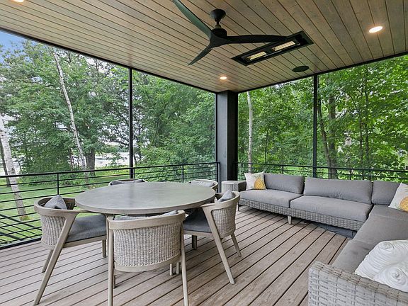 Modern and stylish vibes meet breathtaking lakefront living! An extraordinary, 5-bed / 5 bath, modern home offering a stunning shoreline with picturesque views and tons wooded privacy on a spectacular 1.28 acres. The Peninsula on Lake O’Dowd is a true hidden gem, perfectly placed to bask in southern sunshine and soak up stunning views of the south bay. Meticulously built in 2020 by award winning green builder, Sustainable 9 Design + Build. No element was overlooked in this light-filled, two-story home with striking floor-to-ceiling windows. Contemporary high-end kitchen with adjoining, walk-in custom pantry. Stylish open shelving, private game room, relaxing screened porch, great outdoor spaces including a deck and patio with unlimited serene, lake views. Luxurious, primary suite features a stunning walk-in shower, floating, double sink vanity, and a spacious walk-in closet. Amusement room with sleek concrete floors and custom walk-up bar. Massive, interior sport court is ready to provide a lifetime of fun right in the comforts of home - basketball, climbing wall and attached exercise room. One-of-a-kind murals throughout blend a sense of calm with a playful spirit. It’s truly a rare, distinctive home where bold industrial design meets classic, timeless style. Lake O’Dowd is a fully recreational lake well-known for its incredible ski course, great fishing, and easy access to Stonebrooke golf course located on the north end of the lake. Cast a line, hit the greens, kick back, and live in comfort and style! This is truly a unique and incredible lake property!