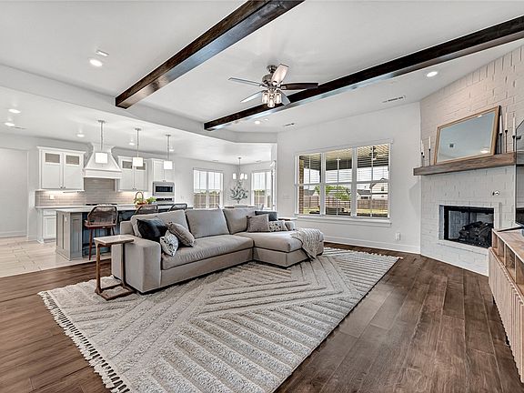Step inside this beautifully landscaped two-level home, where fresh paint and an open-concept layout create a bright, airy feel. The heart of the home is the oversized kitchen island—ideal for gatherings, casual meals, or spreading out school projects. The dining area, framed by two large windows, brings in natural light, while the spacious family room with a cozy gas-log fireplace makes it easy to relax. On the main level, you'll find a private primary suite, a guest bedroom, and a dedicated office with French doors—perfect for working from home. Upstairs, two more bedrooms and a full bath offer great flexibility for kids, guests, or hobbies. Outside, the large lot offers room to roam, and the covered patio is your daily escape, with peaceful views of surrounding farmland and the perfect spot for morning coffee. Just minutes from parks, dining, office hubs, and community perks like a pool and neighborhood gathering spots—this home isn’t just a place to live, it’s a lifestyle waiting to happen.