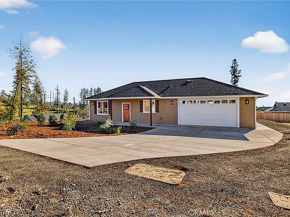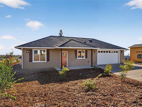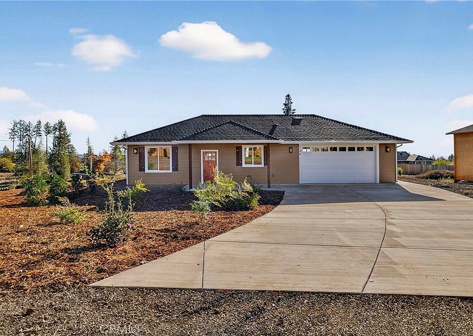 Fantastic Central Paradise location for this 2025 Custom Home, built by Frost Construction a long time Paradise builder. The home offers Owned Solar 3.08 KW system, 7 panels with microinverters. The .32 Acre lot offers space for Boat, Trailer or R.V. parking with electricity. Landscaped front yard on drip system. Boasting a generous 1,021 square feet of living space, this home features top-notch craftsmanship and modern amenities. Upon entering, you'll be greeted by a charming 96 square foot covered front porch with a craftsman-style front door and custom shutters. Step inside to discover an open floor plan that seamlessly connects the living room, kitchen, and dining area. The kitchen is a chef's dream with granite countertops, stainless steel appliances, recessed LED and pendant lighting, and a stylish island for added convenience. The primary bedroom is a serene retreat with crown molding, a slider leading to the covered patio, and a well-appointed en-suite bathroom featuring granite counters and a step-in shower. The guest bedroom also offers crown molding and access to a sleek guest bathroom with granite countertops and a tub/shower combination. The home features gorgeous Vinyl Plank flooring throughout. Outside, you'll find a spacious 114 square foot covered patio with recessed lighting and a ceiling fan, perfect for outdoor entertaining. Additionally, the oversized two-car garage, measuring 23'5" wide by 25'10" deep, includes a laundry area. Plenty of space for a boat, trailer, or RV parking. R.V. electric hook-ups. Don't miss out on the opportunity to call this beautiful home yours!