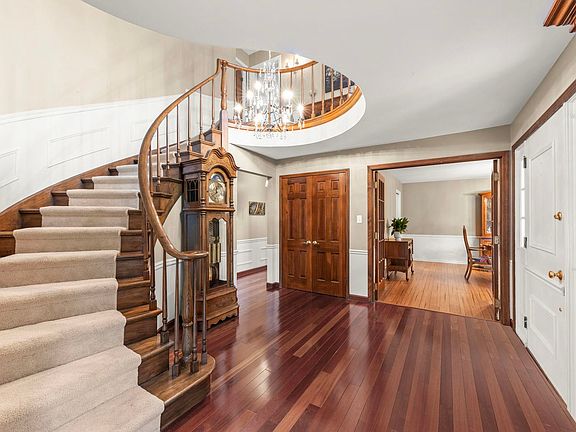 Welcome to this spectacular custom 2-story home in the heart of Frankfort. Enjoy updates throughout, as the home underwent major rehab in 2019. As you arrive, you'll be greeted by a charming covered front porch, perfect for relaxing. Step inside to a grand foyer featuring a stunning spiral staircase. The large formal living room is perfect for entertaining guests or can easily be converted to a home office or playroom, with wonderful natural light filling the space. The beautiful family room boasts elegant built-ins flanking a white brick wood-burning fireplace with gas starter, creating a cozy and inviting atmosphere. The spacious eat-in kitchen is a chef's dream, complete with abundant counter space, numerous cabinets, pantry, coffee bar, and oversized island. Adjacent to the kitchen is a lovely dining room with large windows, providing the perfect backdrop for more formal gatherings. Convenience is key with a mudroom off the garage, leading to an incredible laundry room with utility sink and an abundance of cabinet storage. You will find the perfect layout on the second floor with two primary (en suite) bedrooms, plus three additional bedrooms. The main primary suite features a walk-in closet, two additional closets, and a luxurious bathroom with double sink vanity, soaking tub and shower. The additional ensuite bedroom includes its own bathroom with double vanity, shower, and large closet. Another spacious bedroom offers two closets with access to a walk-in attic, that can be the ideal bonus space for conversion to a playroom or office. Two more generously sized bedrooms complete the upper level. The partially finished basement, nearly 2,000 square feet, is plumbed and features a striking brick fireplace with separate stairs leading to the garage. Outside, enjoy the large deck and ample yard space, ideal for outdoor activities and gatherings. Located down the street from desired Lincoln Way East High School and close to downtown Frankfort, this home's location is unbeatable. A wonderful floor plan with over 3,839 square feet above grade. Don't miss the opportunity to make this stunning property your new home!