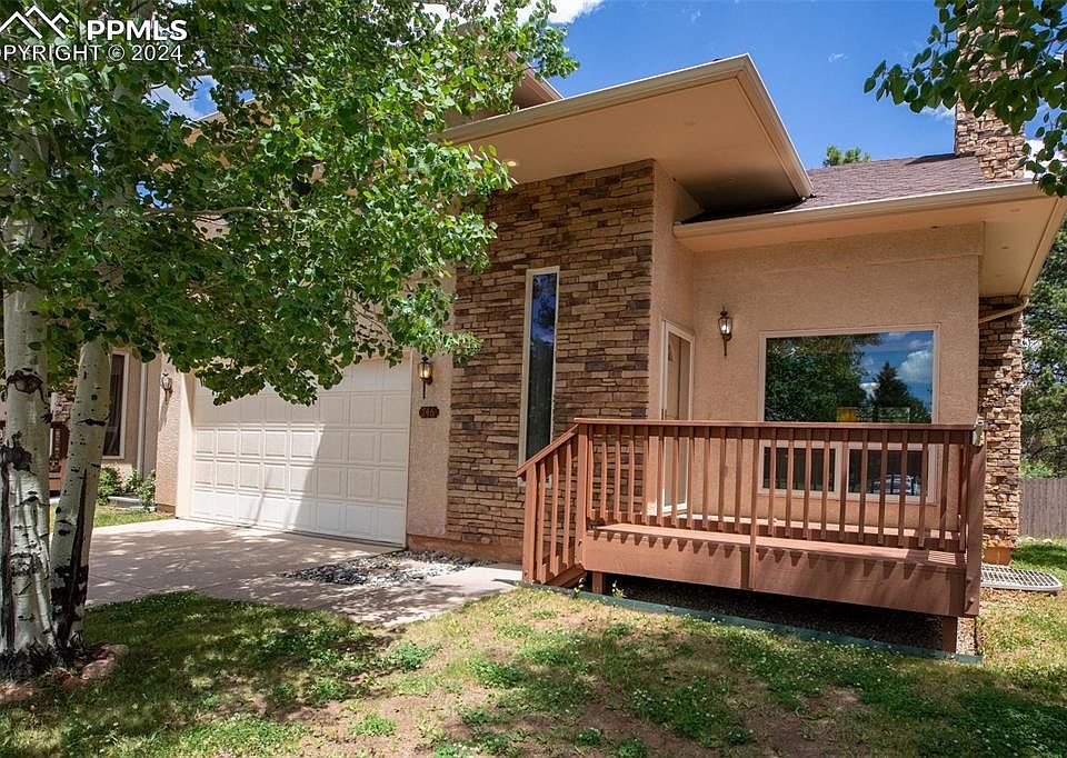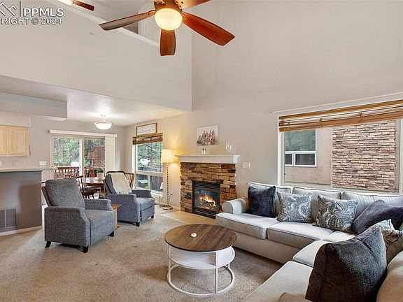 Great townhome in a fantastic location within a small, charming community of just 22 homes. This is one of the few homes in the community that has a great Pikes Peak view! Tiled entry leads into the living room with cathedral ceilings, large picture windows, and gas fireplace as the focal feature. Nice sized kitchen with good cabinet/countertop space, and a gas range. Main level laundry includes a wash sink and half bath off to the side. Upper-level owner’s suite is very spacious, attached to a full bath and a walk-in closet. Second bedroom also located on the upper level will also accommodate a king size bed. Please note the 3rd bedroom is an open loft that overlooks the living room. Full, hall bath can also be found on the upper level. The basement is unfinished, making it perfect for storage or workshop space. Nice wood deck off to the back with a fenced in area for the kiddos or pets. The home has a forced air natural gas heating system and a fully finished two-car garage. HOA fees are very reasonable and cover designated green spaces with picnic tables and additional guest parking. Walking distance to the Woodland Park Aquatic Center, schools and a just a short distance to parks, town restaurants, coffee shops, and shopping. Stop by and see it today.