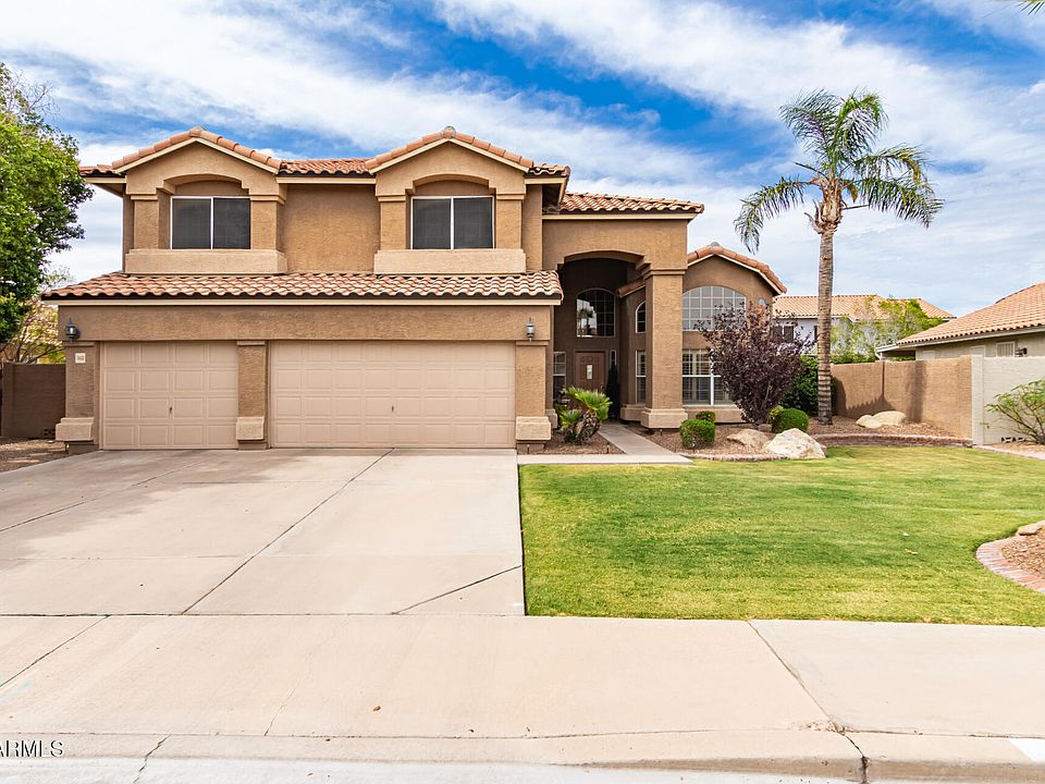 Fall in love with this stunning 2-level home with POOL! Featuring a charming curb appeal & a 3-car garage! Roof is less than 10 years old, newer AC and water heater (2023 for both). The interior will impress you with high vaulted ceilings, transom windows, plantation shutters, wood-look flooring, a fireplace, abundant natural light & a neutral palette, creating a fantastic blend of style and comfort. The bright kitchen boasts ample cabinetry, custom tile backsplash, granite counters, built-in appliances & an island. Take a break in the main bedroom, offering carpet, a closet, and an ensuite complete with double sinks. The den & loft are versatile areas, ideal for extra entertaining areas or a home office. The backyard provides year-round entertainment. What's not to love? Make it yours!