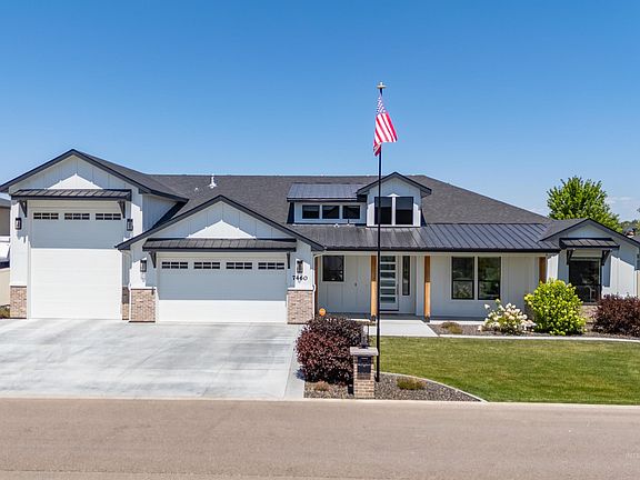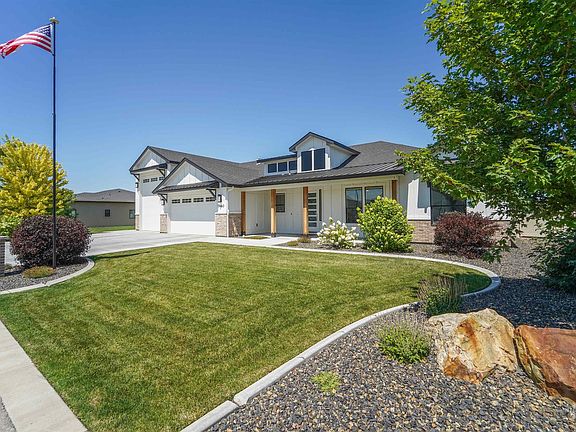 Custom single-level in one of Nampa’s most sought-after neighborhoods! Beautiful LVP hardwood floors flow through vaulted, light-filled spaces anchored by a floor-to-ceiling brick gas fireplace with built-ins. The chef’s kitchen impresses with an oversized island, quartz countertops, double ovens, custom cabinetry, soft-close pull-outs, and ample storage. Retreat to a spa-like primary suite with soaking tub, walk-in tile shower, quartz vanity, and huge walk-in closet. A private second master with its own bath is perfect for guests or multi-gen living. Entertain indoors with built-in Sonos (inside & out) or outdoors on the oversized covered patio overlooking peaceful views—no back neighbors! 52’ pull-through RV bay, extra-deep 2-car garage with 220V outlets, and manicured landscaping!