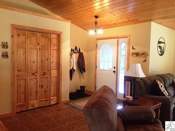 Winding drive leads to this secluded, 1 level home on 9+ acres with direct access to State land trail system and 3/4 mile to Island Lake boat landing. Level landscaped yard w/ plenty of room for kids to play and also a raised bed vegetable garden + an 11'x24' storage bldg. Maintenance free hardy plank siding, concrete sidewalk and 12'x24' patio off dining rm overlooking beautiful back yard. Dream kitchen w/ custom cabinets, large eating bar and adjacent 13'x18' informal dining area. Large Master BR with a 6'x10' walk-in closet and Master bath. Large mud rm w/ adjacent laundry/bath and oversized 2-car (28'x28') finished, heated garage. Amenities include; Rustic Applewood laminate floors and 6 panel knotty pine doors throughout home, Marvin windows, In-floor heat, Kinetico H2o softener, security system, 2'x6' exterior walls, 1/2 OSB wall sheathing and blown-in insulation.
