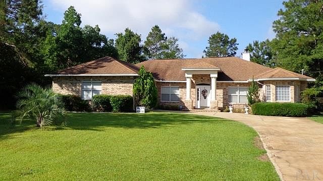 Located in Bayou Landing, this 4 bedroom 2 1/2 bath custom home is the perfect fit for busy families. This home sits on a very private .6 acre parcel, and has beautiful curb appeal. The home shows pride of ownership with elegant arched doorways, hand-scraped plank flooring, 9 foot ceilings, crown molding and built-ins. The family chef will appreciate the stainless appliances with remaining warranties, pantry, and solid-surface countertops, and the spacious formal dining room will be perfect for holiday entertaining. As you enter the great room, the wood burning fireplace and beautiful Spanish-lace textured walls and ceilings invite you in to relax, or head out to the screened in porch- featuring surround sound- and watch the kids play in the above ground pool. In addition, the pool has been fitted with a new liner for easy upkeep. The master suite also has access to the patio, and features custom details such as trey ceilings and wall-to-wall carpeting. The second bedroom/office and additional bedrooms with jack-and-jill bath have ample storage space with double closets. The half bath has been upgraded with a pedestal sink with granite vanity. Utility room comes complete with sink! There are no HOA covenants, and plenty of room to park your boat or RV. The over-sized garage has a side entry. Economically minded buyers will appreciate the metal hurricane shutters and hip roof, which lessens home insurance premiums. Optional Flood insurance is only $614 , and you can walk or ride your bike to Blackwater River, only three blocks away. This property is right off of Exit 28 on I-10 with easy access to Milton or Crestview, and is conveniently located only 30 minutes to downtown Pensacola and the beach. Survey and site inspection were completed in 2011. Put this property on your must-see list, you won't be disappointed!