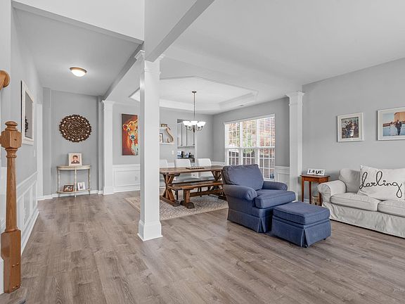 One of the best backyards in Raleigh's desirable Long Lake community! 4 bed PLUS office! Inviting and functional floor plan opens with a stunning two-story vaulted foyer lined with LVP floors. Formal living room (ideal for a sitting area or bar space) and formal dining room with tray ceiling and wainscoting. Light-filled open layout with large windows overlooking the private backyard. Kitchen features granite countertops, tile backsplash, stainless appliances, and an island that opens to the breakfast nook and family room. Spacious, yet cozy family room with a fireplace and built-in shelving/storage. Plus, private first floor office with French doors! Upstairs, LVP continues up the stairs, hallway, bathrooms, and spacious primary suite with tray ceiling and a huge walk-in closet. The primary bath offers an expansive dual-sink vanity, garden tub, and separate walk-in shower. Three additional bedrooms plus a full bath with dual sinks. Convenient upstairs laundry room. Step outside to the expansive custom patio, tall privacy fence, and one of the community's most impressive flat backyards, perfect for play, pets, & entertaining. New blinds 2024, BRAND NEW gas water heater 2025, HVAC 2023. Neighborhood amenities include a multiple pools, pickleball and tennis courts, clubhouse, fitness room, playground, and picnic areas. Incredible location just minutes from Leesville schools, Lake Lynn, Umstead State Park, Brier Creek, Crabtree Valley Mall, RDU Airport, RTP, and I-540 & I-440. Hurry before it's gone!