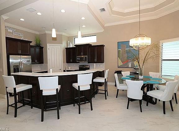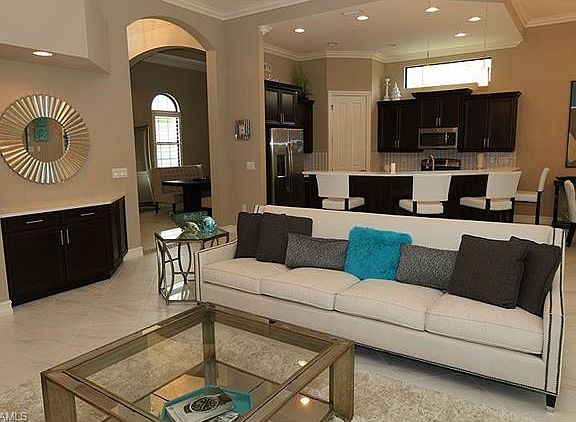 NEW ON THE RENTAL MARKET! Sophisticated 3 lg. Bedrooms +Den, and 2 baths. Spacious master suite with two walk in closets and private door to lanai, master bath has two separate vanities with beautiful marble tops, walk-in shower, & soaking tub. Kitchen offers Quartz countertops w/designer backsplash and cabinetry, stainless appliances, eat-in kitchen with bay window and views. High Ceilings w/ crown molding, coffer ceilings & plantation shutters throughout home giving plenty of detail. For the ultimate entertaining the bright great room w/ transom windows & dry bar open to the extended lanai to the heated pool & spa controlled by Pentair water system, a fully equipped outdoor kitchen is great for entertaining. Remote controlled indoor/outdoor surround sound, home security system controlled by your smart phone. Impact glass windows & doors. Fabulous North Naples community with excellent schools.