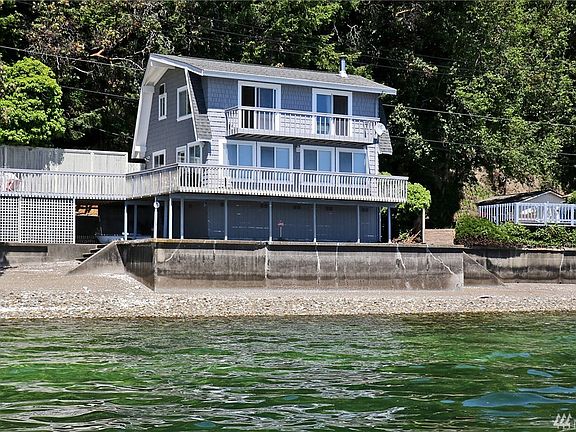 Fully furnished move-in-ready water toys included! Fabulous vacation home on Hood Canal! Impeccably maintained 2 story,2 bedroom,2 bath home on 2 lots with room for parking or expansion. 133 ft beachfront & deepwater tidelands loaded with shellfish & decks galore. The exquisite kitchen, dining and living area, as well as both bedrooms, have spectacular water views. A huge unfinished crawl space is ideal for storing all the waterfront toys. Includes detached outbuilding and bonus deck on 2nd lot.