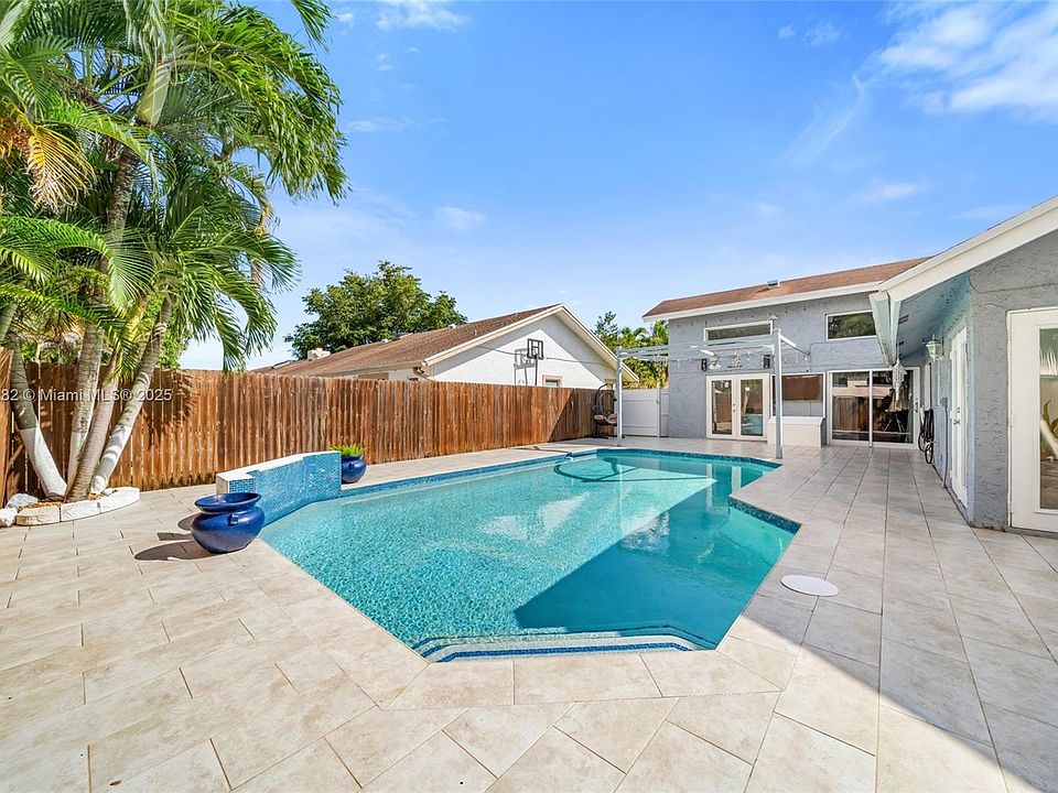 Welcome to this stunning 3-bedroom, 2-bath home featuring a private pool and a 2-car garage, perfectly situated in a family-friendly community with no HOA fees. Enjoy outdoor living at its best—relax or entertain by the pool and create lasting memories with family and friends. Inside, you’ll find stainless steel appliances, a full-size washer and dryer, updated light fixtures, and ceiling fans throughout. Major systems have been well maintained with a 3-year-old A/C and a 5-year-old water heater. Home also offers hurricane impact window and doors. Conveniently located near shopping, dining, and entertainment—this home offers the perfect blend of comfort, style, and location. Don’t wait—this one won’t last!