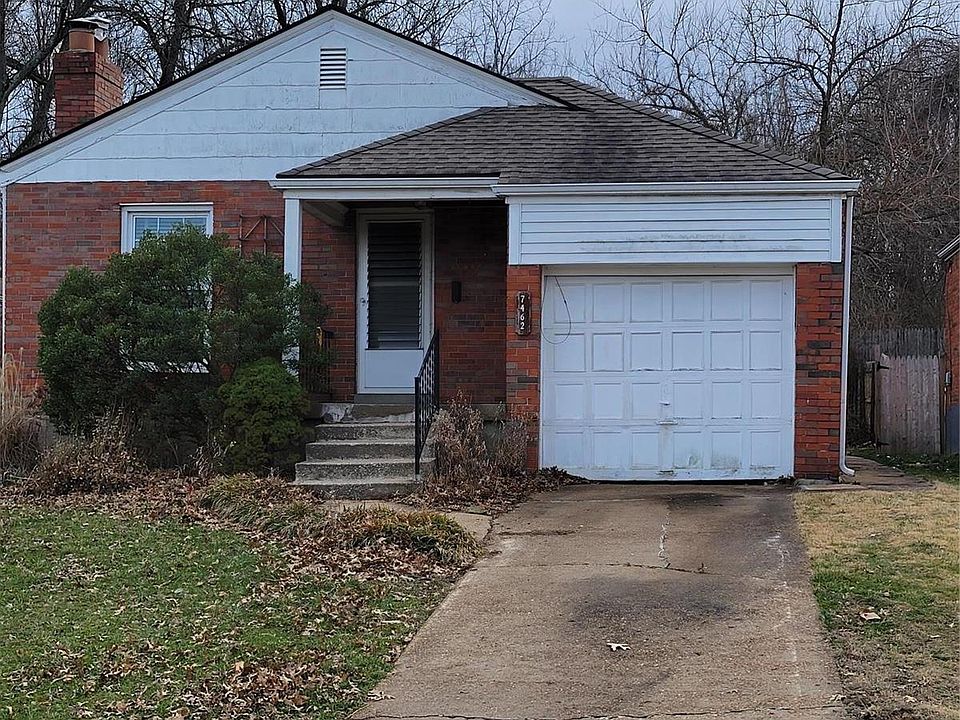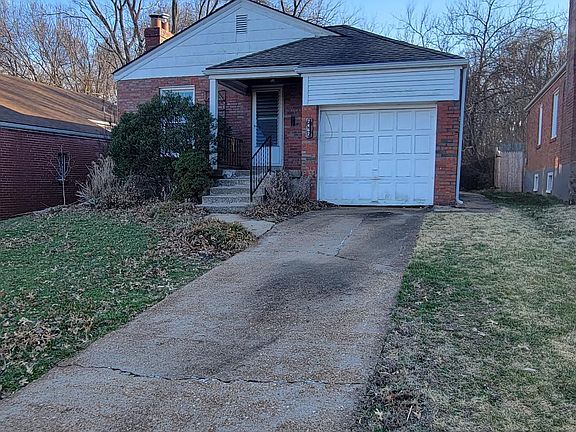 An opportunity to own this Home with Much Character in a cozy neighborhood, adjacent to Normandy Golf Course & Walkable distance to UMSL Campus. A Mostly Brick Bungalow, as you enter from the covered front porch (be careful of the railing)you will be greeted by a Beautiful fireplace flanked with equally as beautiful stained-glass & original wood floors(Some refinishing may be preferred) flowing into the adjacent DiningRm. The bright light-filled kitchen offers gas stove frig and microwave & lots of cabinetry, the garage is accessible from Kitchen and basement stairs are located here too. Two bedrms and full bath, complete the 1st Floor The quirky L/L has knotty pine walls w/ a "built-in piano" & adjacent half bath and separate laundry room w/mechanicals. SOME Newer vinyl windows Transportation is near by-including Metro. This is an "AS-IS" Sale : House is being SOLD in the condition "As IS" No Repairs, Credits or Any inspections provided by Seller. SpecialListingConditions: Probate COOL: 14 SEER+