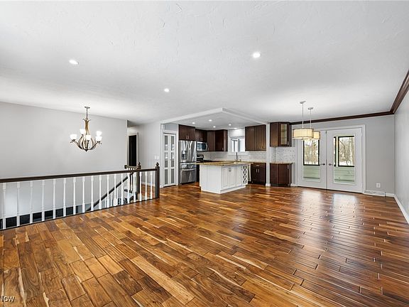Nestled on a spacious, wooded lot, this beautifully updated 4-bedroom, 2-bathroom bi-level home offers 2,500 sq. ft. of comfortable living space. The main level features an open-concept layout with a modern kitchen (2015) complete with stylish cabinetry, sleek countertops, and a trendy backsplash. Gorgeous Acacia hardwood floors (2015) flow throughout, complementing the bright new windows (2015) that bathe the space in natural light. The inviting sunroom, renovated in 2022, is the perfect spot to relax and enjoy the surrounding views. Downstairs, a cozy den with a wood-burning fireplace and wet bar is ideal for entertaining. Recent upgrades include a new roof and skylights (2023), electric panel (2023), and a new furnace/AC (2021). Outside, enjoy the newly landscaped backyard with a new fence, patio, and drainage system, plus the added convenience of an extended driveway. This home is move-in ready with modern touches that will make you fall in love!
