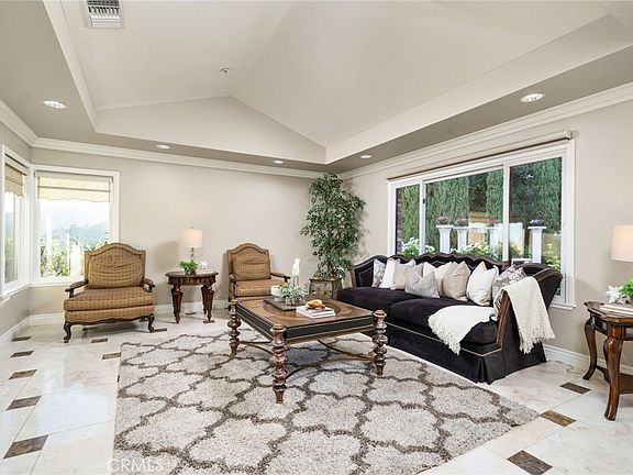 Endless City Lights Views! Situated in a private North La Verne location, experience panoramic views from every corner of this exquisitely upgraded and remodeled home. Enjoy the views from the gorgeous pool deck and throughout the elegant interior of this stunning home. This luxurious residence offers an exceptional blend of comfort, style, and panoramic beauty. This home boasts 4,036 square feet of meticulously designed living space, featuring five generously sized bedrooms (three are en-suite) and five stylishly appointed bathrooms. The charming brick exterior and inviting front porch, complete with a wrought iron front door, welcomes you into a grand formal entry. High ceilings and a sweeping wrought iron staircase set a dramatic stage. The formal living room features front-facing windows with serene garden views, enhancing the home’s natural light and elegance. The chef’s kitchen boasts beautiful views, a center island with a sink, custom cabinets, and granite countertops. Equipped with top-of-the-line stainless steel appliances, including a Viking six-burner gas range w/double ovens, a Viking built-in refrigerator and freezer, refrigerator drawers, two dishwashers, and a microwave. A cozy kitchen eating area completes this culinary haven. Enjoy dining w/a view in the formal dining room, offering a scenic backdrop for memorable meals. The family room features high open beam ceilings, a cozy brick fireplace, and French doors leading to the covered patio. An impressive built-in bar with two beverage refrigerators and sink adds to the room's appeal. The upstairs primary bedroom is a serene retreat, featuring a private balcony overlooking the pool with stunning views. A large walk-in closet with custom built-ins and a spa-like primary bathroom with dual sinks, a walk-in shower with multiple shower heads, and luxurious bathtub complete this exceptional space. The upstairs private office/5th bedroom provides a quiet and productive space for remote work or study, adding convenience to your daily routine. The expansive backyard is an entertainer’s dream, with endless panoramic views, gorgeous pool and spa w/multiple water features, a covered patio perfect for evening dining, a built-in BBQ with a sink and large island with seating, a fireplace, and an expansive deck for gatherings. The home also features a 3-car attached garage w/modern glass panel doors with direct access into the house. Don’t miss the opportunity to own this stunning North La Verne gem!