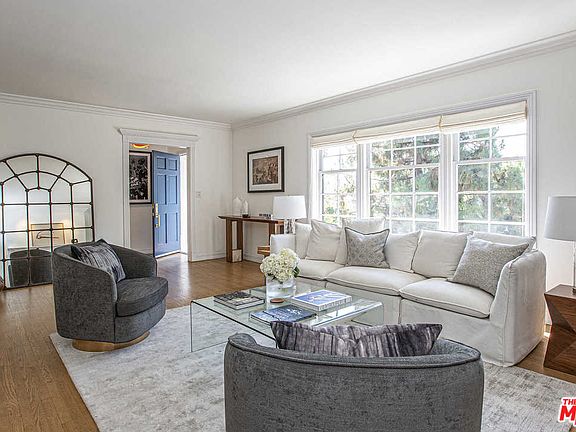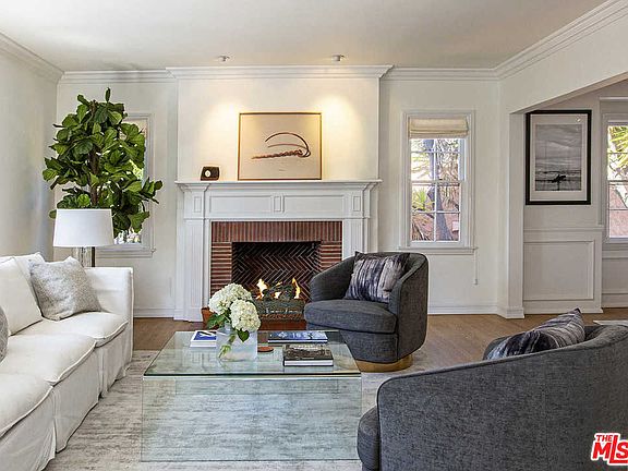Chic and Sophisticated Traditional with all the comforts of contemporary living. The beautifully light-filled living room boasts natural hardwood floors, crown moldings, a cozy fireplace, and opens to the spacious dining room. A gorgeous gourmet kitchen, complete with center island and stainless steel appliances, opens to a large den with wood burning fireplace and a beautiful built-in bookcase. The Master suite features a spa-like bathroom with separate shower and soaking tub. All guest bedrooms open directly to a romantic brick patio, outdoor fireplace, and grassy yard with ample room for a pool. This beautiful home offers casually elegant living in a convenient location in the Hollywood Hills near Runyon Canyon Park and the famed Sunset Strip.