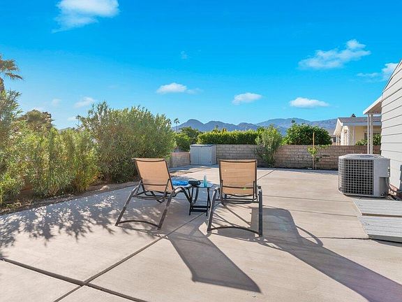 Discover exceptional value and comfort in this beautifully maintained 2-bedroom, 2-bath manufactured home in the highly desirable Portola Country Club, a gated 55+ golf community in the heart of Palm Desert -- where you own the land (no space rent!).Bright and inviting, the home offers open-concept living with newer dual-pane vinyl windows showcasing stunning mountain views, a newer water heater, a new ceiling and vinyl plank flooring in the air conditioned bonus room. Thoughtfully designed with two primary suites, each featuring its own ensuite bath, the layout provides both privacy and flexibility--ideal for hosting guests. In addition to central air and heating, an evaporative cooler enhances energy efficiency and year-round comfort.The bright and spacious kitchen includes a gas cooktop, stainless steel double oven, double stainless sink, and a built-in breakfast bar--perfect for your morning coffee or casual meals. The comfortable family room flows through French doors into a versatile bonus area, leading to a spacious hobby or craft room--tailored to your lifestyle.The home opens onto a large backyard with stunning mountain views, easily accessed from the rebuilt carport. This private outdoor space offers abundant room for a spa, barbecue, or garden, along with space for your four-legged companion and endless possibilities for relaxing or entertaining. The home is on a permanent foundation with recorded 433A for easy financing and peace of mind.Residents of Portola Country Club enjoy unlimited golf on the private 18-hole, par-3 course, included in the low HOA fee, which also covers trash, cable, and internet. The community features three pools, pickleball and bocce courts, a NEWLY REMODELED clubhouse and fitness center, pub, dog park, and a full calendar of social activities.Located close to El Paseo's premier shopping and dining, the McCallum Theatre, and Civic Center Park, this home offers the perfect combination of comfort, community, and resort-style living in a friendly and active environment.